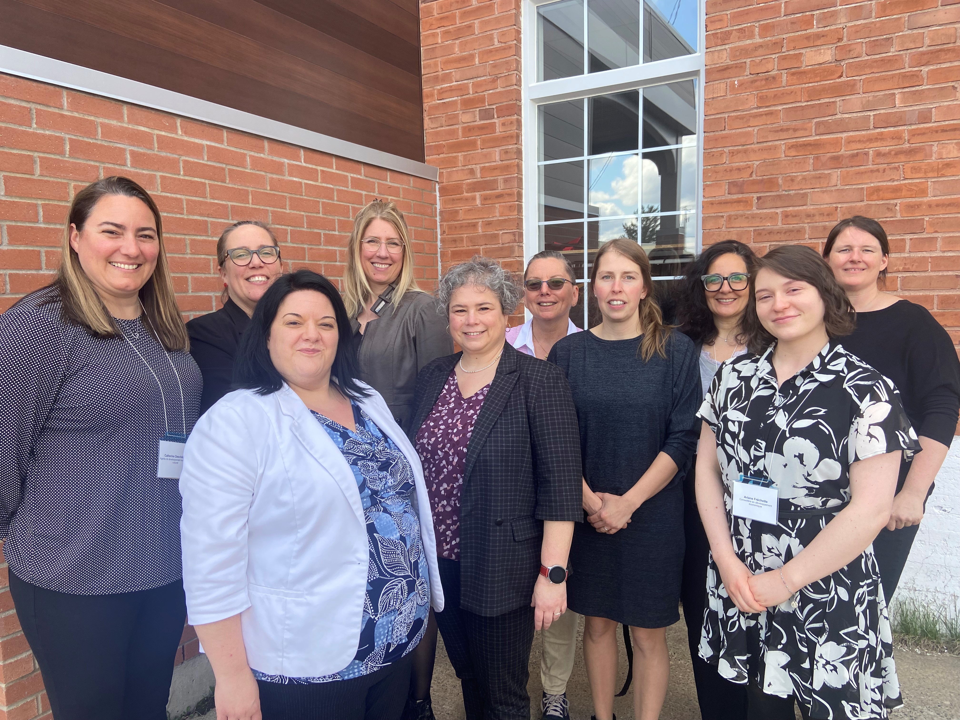 Bas de vignette (avant vers l'arrière) : Stéphanie Trottier, conseillère en développement économique, Julie Provencher, analyste financière, Marie-Hélène Larivière, conseillère en développement économique, Ariane Fréchette, conseillère en développement économique, Catherine Deschênes, agente de développement touristique et culturel, Karine Béliveau, conseillère en développement économique, Claudie Beaudoin, conseillère en développement économique, France Trudel, conseillère en développement économique, Sabine Merault, stratège innovation chez Inbe et Geneviève Therrien, conseillère régionale à l'innovation à l'ARDECQ