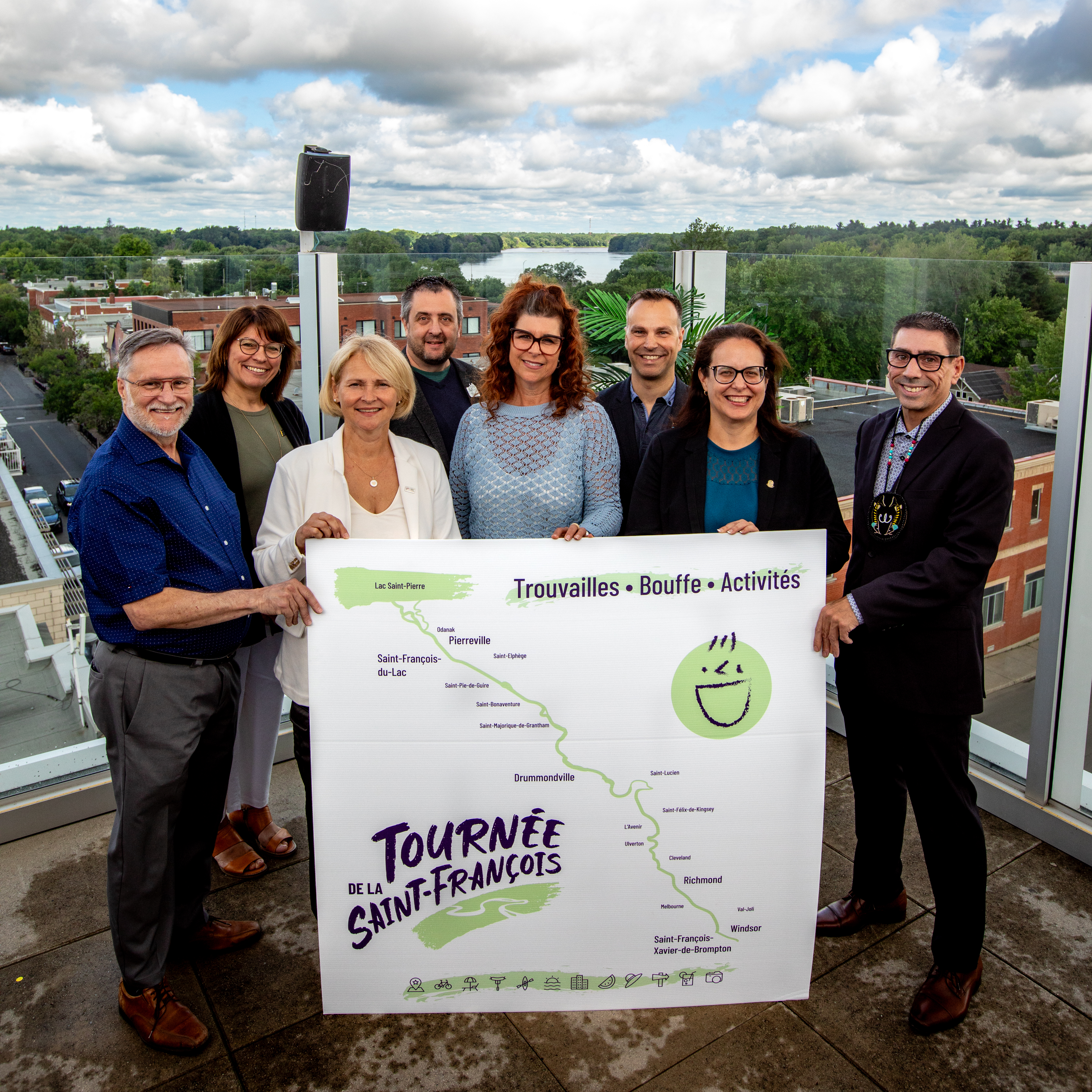 Drummondville, le 27 juin 2024 - Cinq organisations se sont unies pour structurer, développer et promouvoir une offre touristique majeure autour de la rivière Saint-François (Alsig8ntegw). Des représentants du tourisme de la MRC de Nicolet-Yamaska, de la MRC de Drummond, de la MRC Val-Saint-François, de la communauté des Abénakis d'Odanak et de l'Association touristique régionale - Tourisme Centre-du-Québec ont additionné leur force pour ficeler ce projet.