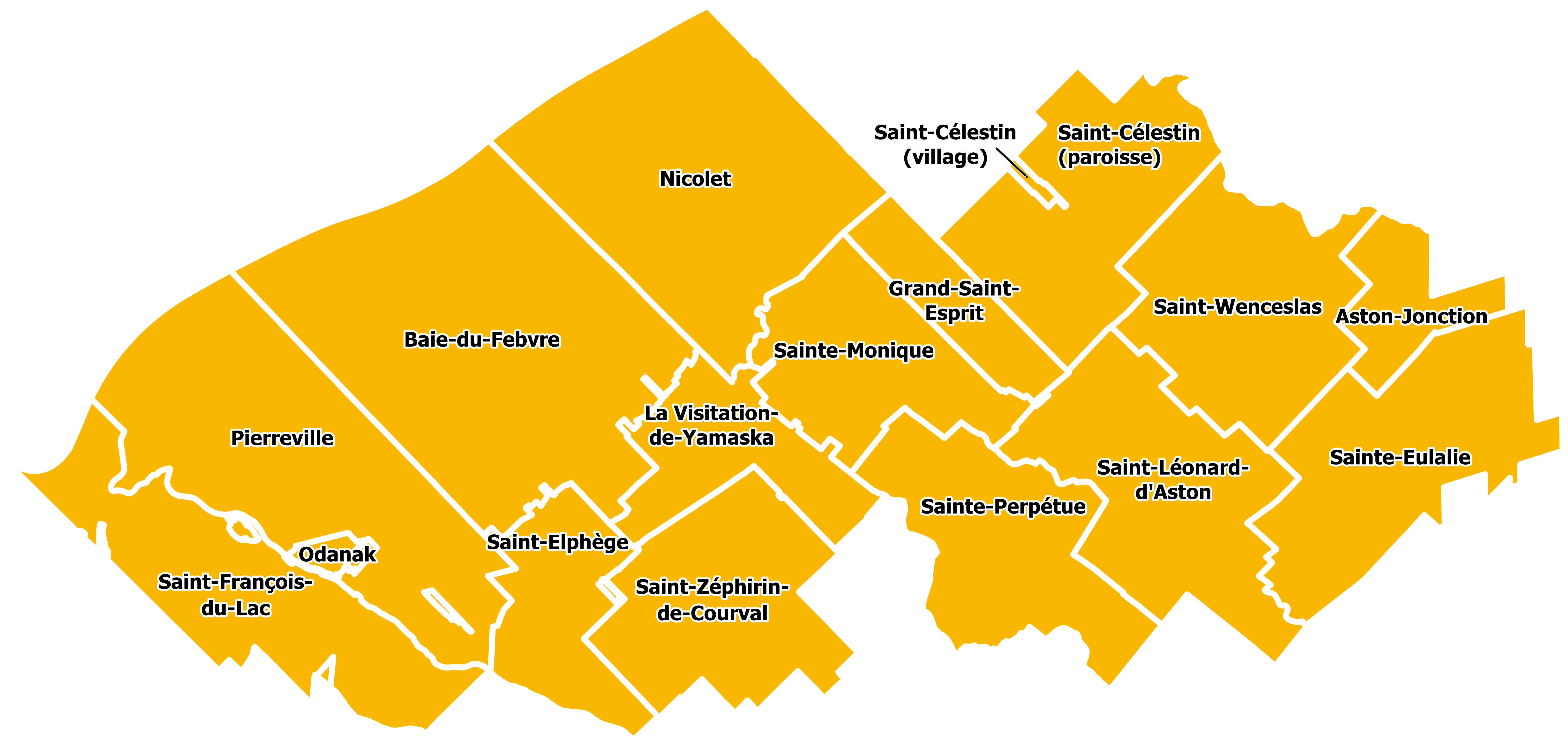 Le territoire regroupe 16 municipalités, dont une ville, Nicolet, ainsi qu'une communauté autochtone, soit Odanak.